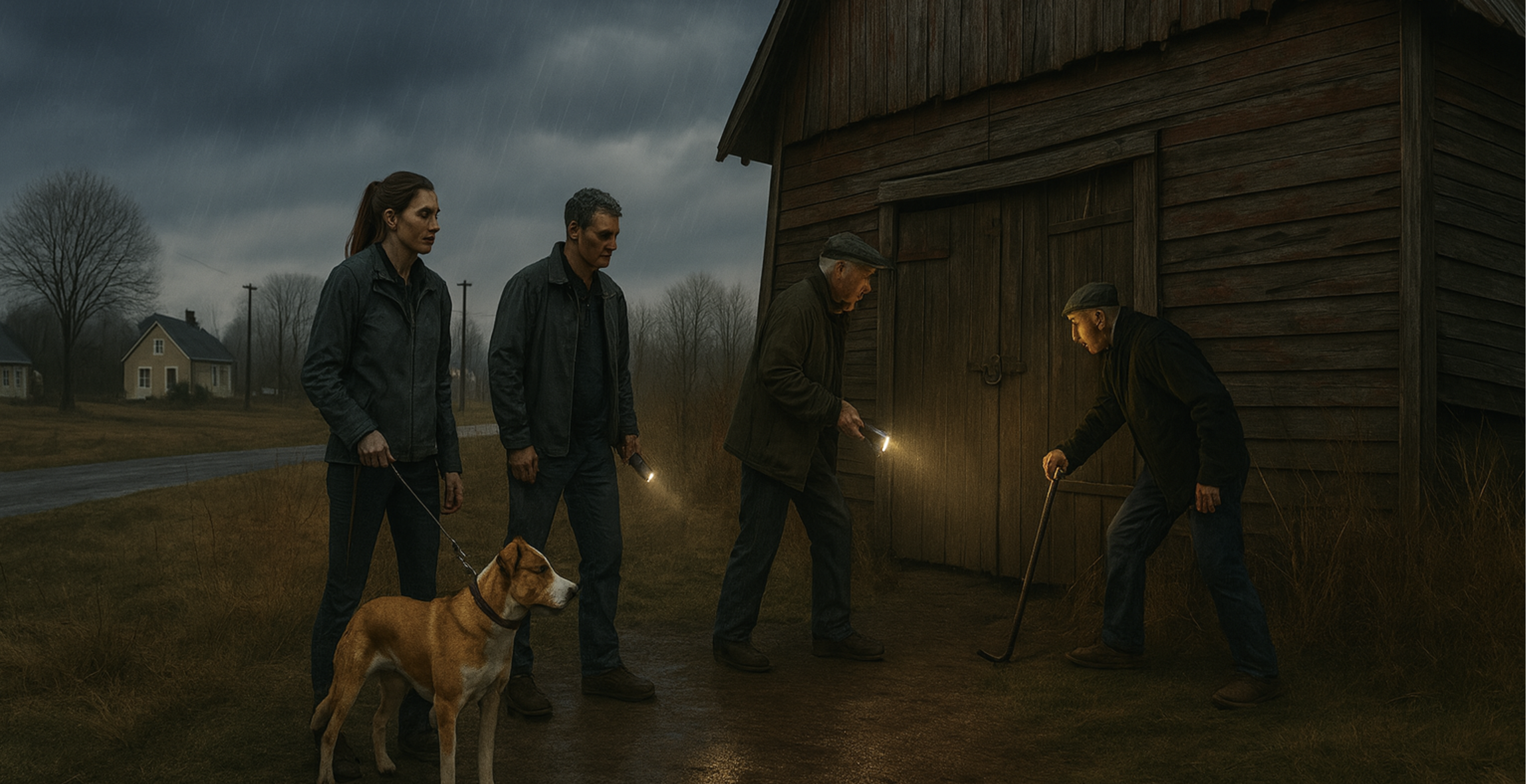 By late afternoon, gray clouds rolled in and a cold drizzle began to fall. The sound came again, louder this time, desperate and pleading. Emma called the non-emergency number, then her neighbor Jack, and finally Leo, a carpenter known for his fearlessness when it came to abandoned buildings. He arrived with a flashlight and a crowbar, muttering about barns that like to keep their secrets. Today, curiosity had nothing to do with it.