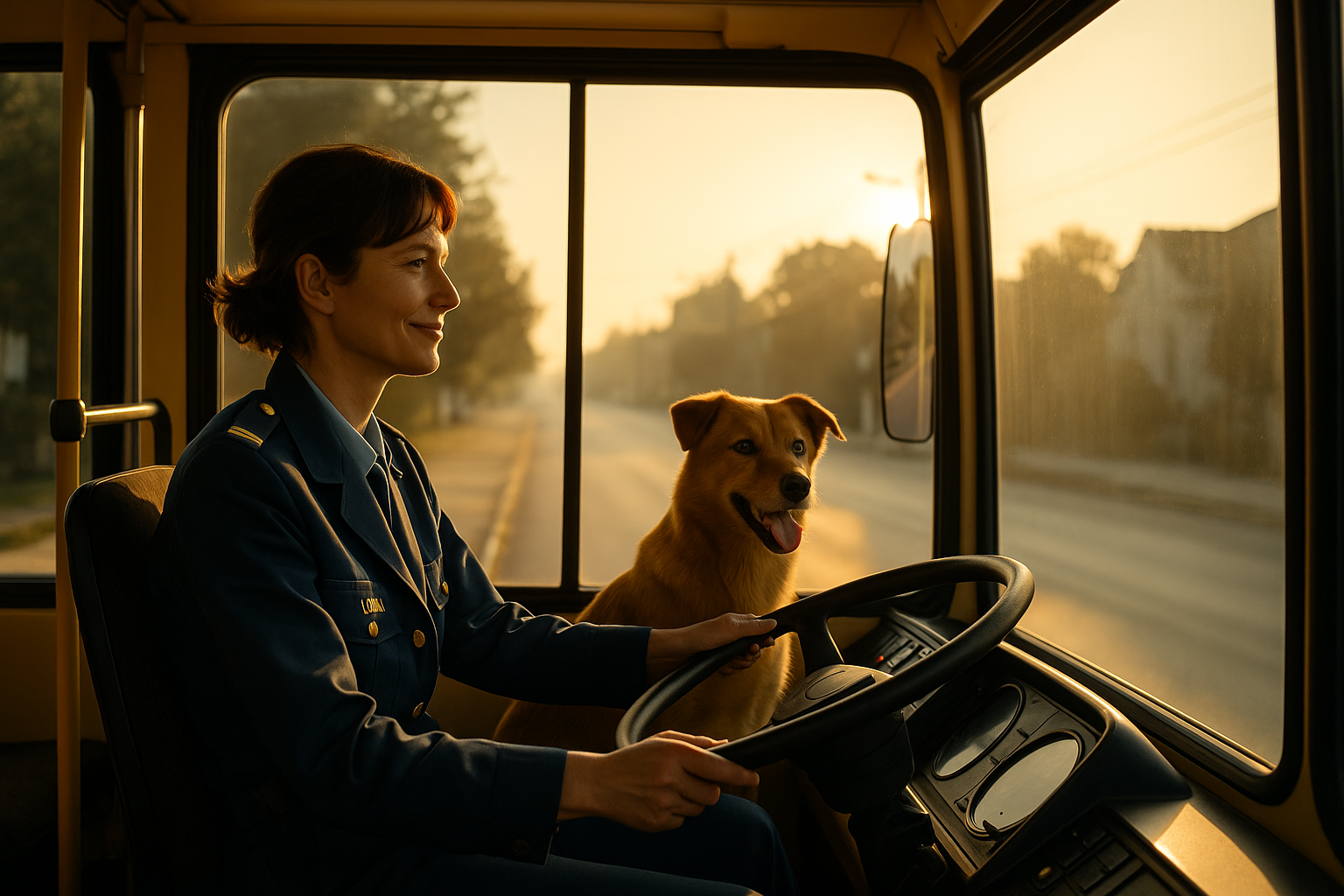 From that day forward, Max rode every route with her. Passengers adored him, snapping photos and offering treats. Children waved when they saw the “bus dog,” and Laura’s bus became known as the happiest one in the city. One morning, as the sun rose over the quiet streets, Laura glanced at Max sleeping peacefully beside her. The golden light filled the bus, warm and soft. She smiled and whispered, “You kept waiting for someone to come home. Turns out, you just needed a new one.” Max looked up at her, tail thumping against the seat. Outside, the city stirred to life, but inside that bus, everything felt calm. It wasn’t about loss anymore—it was about second chances and love finding its way back. That day, Laura realized something she’d never forget: sometimes love doesn’t disappear. It just takes a new road home.