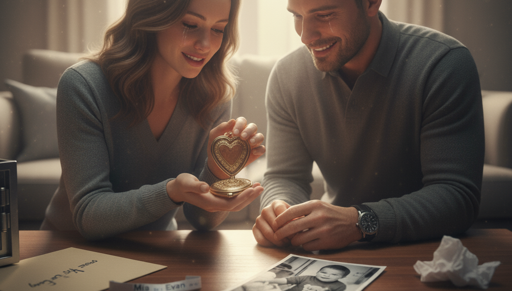 Back home, they opened the locket. A tiny hospital bracelet slipped into Mia’s hand, printed with two names: hers and the boy who had donated his teddy bear to the NICU that week. A small photo showed a toddler reaching toward a newborn’s blanket.