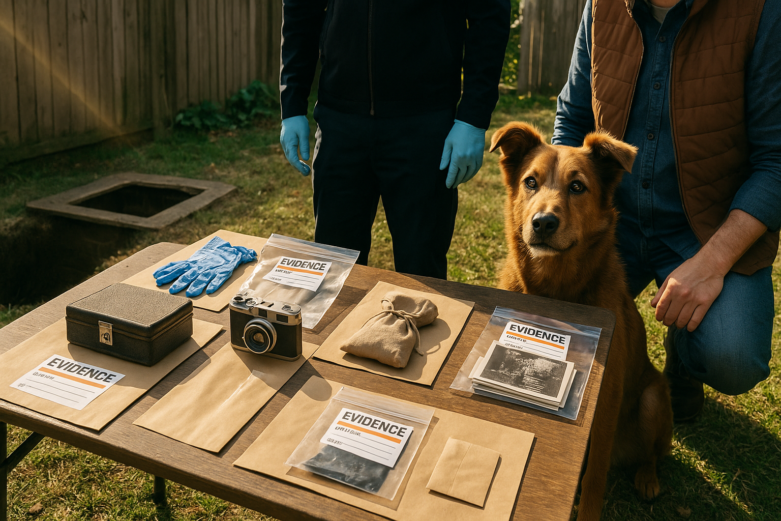 Authorities had searched everywhere above ground, but the answer had been buried just three feet below the fence line. The neighbor’s dog, trained to find hidden toys, had followed the faint scent of metal and uncovered what no one else could. Families got their lost heirlooms back. The cases were finally closed. And one muddy dog went home with a brand-new tag engraved with the words, “Finder of Lost Things.”